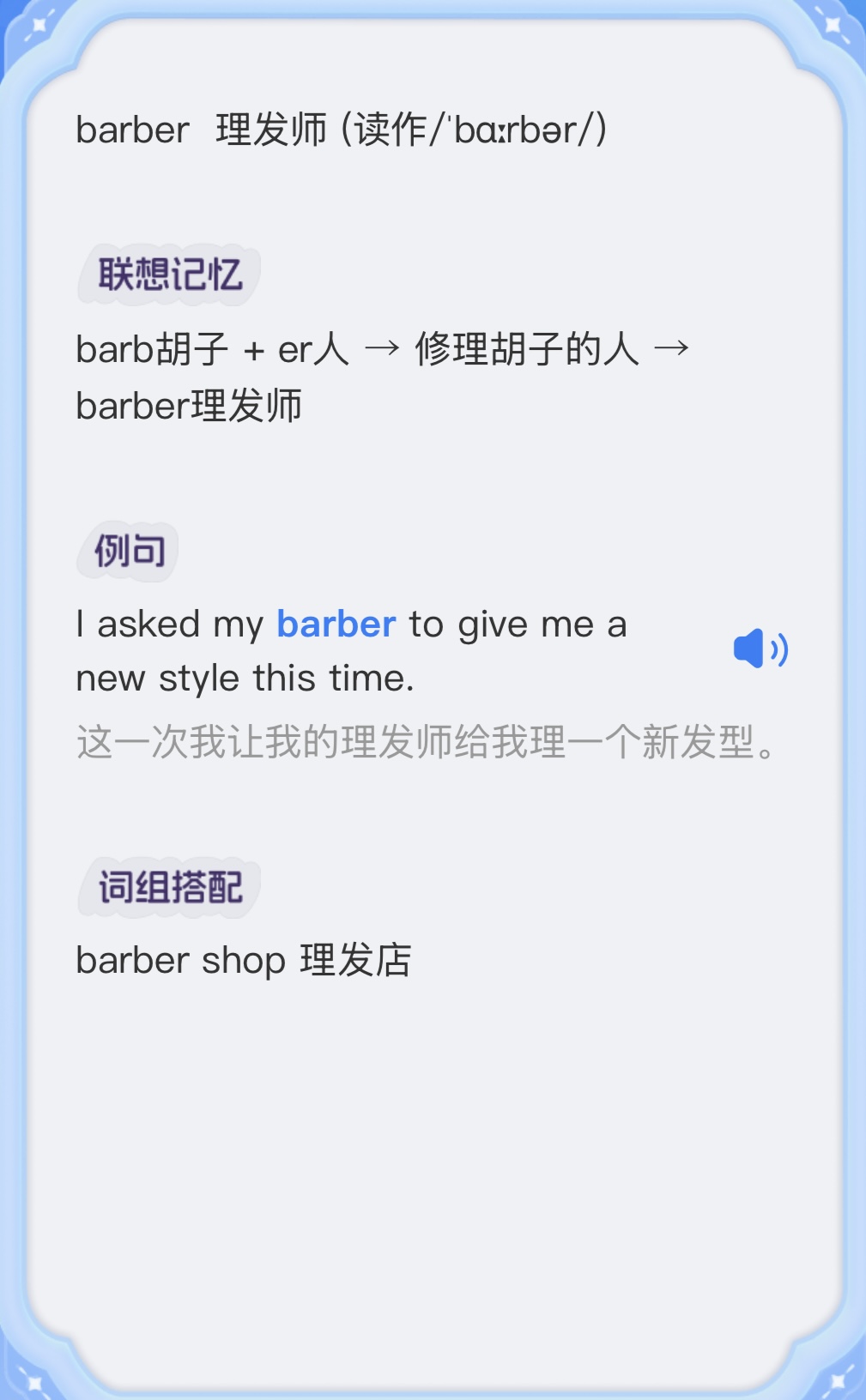 - 输出结果应包含以下部分:单词、词性、音标、核心含义、例句、词组搭配、词根词缀解析、联想记忆文案。