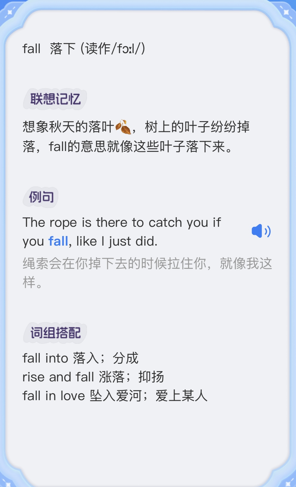 - 例句、词组搭配这三项需要同时给出英文文本的对应中文翻译。